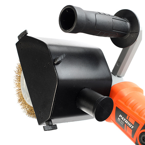 На корпусе инструмента есть вентиляционные отверстия, которые снижают температуру поверхности двигателя во время длительных работ. Наличие дополнительной рукоятки с прорезиненным покрытием не дает инструменту скользить в руке. Замену угольных щеток можно произвести самостоятельно. У шлифовальной щетки большая площадь обработки, которая прикрыта защитным кожухом, предотвращающим запыление рабочей зоны. Возможность подключения пылесоса к брашировальной машине обеспечит чистоту на рабочем месте. Производитель дает гарантию на изделие 2 года.
