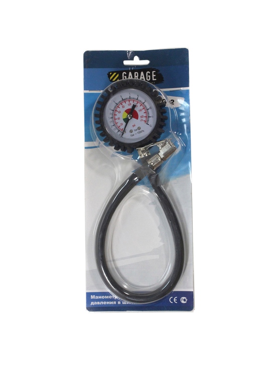 Манометр GARAGE TG-2 8085200 применяется для проверки давления в шинах. Оснастка имеет резьбу 1/4'' папа к которой прикручен шланг длиной 40 см.