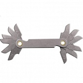 Резьбомеры применяются для внутренней и наружной резьбы. С его помощью можно правильно подобрать параметры профиля резьбы. Он избавляет пользователя от неприятностей во время создания 2-го элемента в соединении. В основном применяется в слесарном деле. Инструмент включает комплекс гребёнок, которые имеют зубчатую форму. Каждая из них обладает конкретным интервалом между выступами смежного характера. За счет хорошо отшлифованных поверхностей и широкой конфигурации модели можно применять для определения шага как наружной, так и внутренней резьбы. Как правило, на лицевой части каждого элемента наносится шаг резьбы для удобства работы и быстрого выбора нужной гребенки.