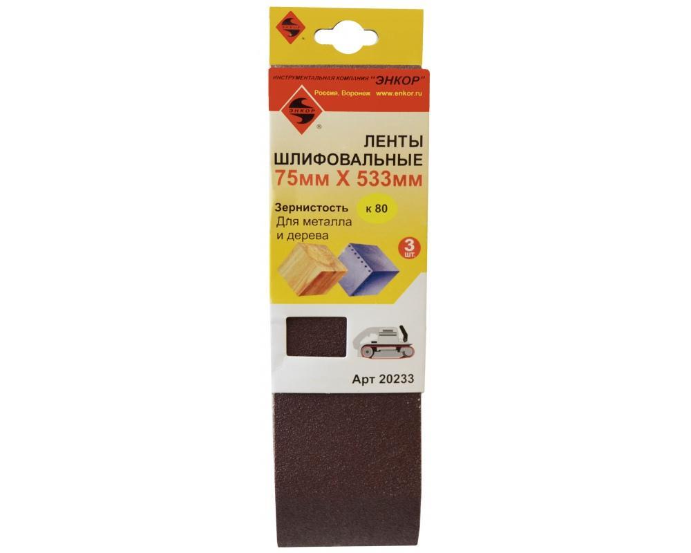 Шлифлента 75 x 533 К80 (3шт) Энкор 20233