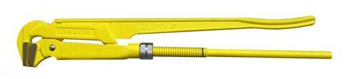 Ключ трубный 2" 90 градусов Энкор 19987 предназначен для монтажа хромированных деталей сантехнической арматуры. Во избежание царапин и сколов на хромированых поверхностях губки ключа имеют специальные пластмассовые колпачки.