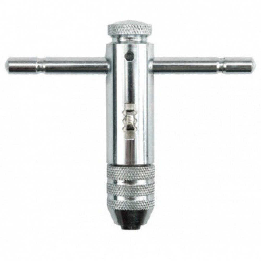Метчикодержатель с трещеткой М3-М8 — инструмент для нарезания внутренних резьб, представляет собой винт с прорезанными прямыми или винтовыми стружечными канавками, образующими режущие кромки. Метчик хвостовой частью крепится в вороток, рабочей частью вводится в отверстие, в котором при проворачивании воротка возвратно-поступательными движениями нарезается резьба. Рабочая часть метчика имеет режущую и калибрующую части.
