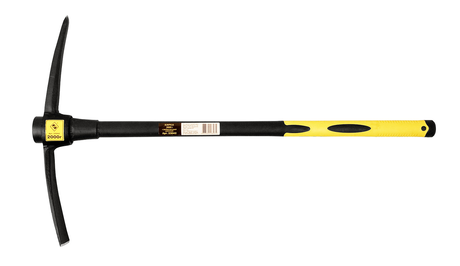 Кирка 2 кг. с фибергласовой рукояткой — ручное орудие в виде заостренного с одного или двух концов молотка или стержня для обработки земли, дробления, раскалывания твердых пород, льда и т.п.