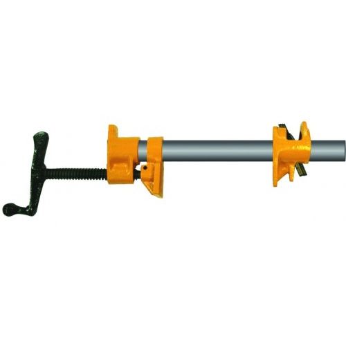 Струбцины поставляются в картонных коробках. Предлагаем два типоразмера: 1/2 дюйма и 3/4 дюйма. Трубная струбцина позволяет зажимать крупноформатные заготовки. Трубной она называется только потому, что несущим стержнем такой струбцины служит стальная труба. Труба в комплект поставки не входит, на фотографии изображена для понимания конструкции. Длина струбцины зависит от трубы, которую Вы будете использовать. Обычно используют трубы метр-полтора, редко - два метра. Со струбцинами 1/2" используется полдюймовая труба.