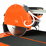 Отдельно стоит отметить скорость вращения шпинделя. Она настолько высока, что позволяет режущему диску за короткое время разрезать даже самые прочные материалы. Чтобы в процессе работы не произошёл перегрев станка и самого диска с обрабатываемой плиткой, применяется охлаждение. Заодно скажем про расположение двигателя – он находится сверху.