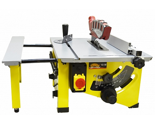 Устройство оснащается небольшим электродвигателем коллекторной компоновки, который развивает мощность 1,2 кВт - такая производительность сопоставима с намного более дорогими модификациями. За счет этого станок распиловочный Корвет 10М получил очень хорошие отзывы от профессионалов, которые высоко оценивают такие характеристики за возможность уменьшения трудоемкости работ и снижение вероятности поломки. Изготовитель также использовал в приборе современные технические решения, среди которых - зубчатая передача с низким уровнем механических потерь, а также электромагнитный пускатель, улучшающий комфорт и исключающий самопроизвольный старт. В качестве основы для укладывания заготовок используется достаточно крупный рабочий стол, габариты которого равны 523*400 мм. Особенностью, которой обладает модификация Корвет 10М, является возможность удлинения поверхности - в данном случае используется выдвижная секция - благодаря ей облегчается доставка, однако несколько уменьшается удобство размещения тяжелых объектов. На поверхности могут крепиться такие приспособления, как параллельные, прямые и косые упоры, а также другие средства фиксации, которые содержит каталог производителя.