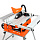 Пильный диск закрыт специальным кожухом, производитель позаботился о безопасности оператора. Станок является отдельной рабочей единицей. Он имеет свои собственные опорные ножки и колеса для перемещения по цеху. Аварийная кнопка на корпусе позволяет быстро остановить вращение диска, если возникла экстренная ситуация. Благодаря параллельным и угловым упорам работа с деревом стала еще удобней.