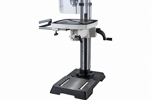 Станок сверлильный JET JWDP-12 716000M — профессиональный станок для сверления отверстий в металле, дереве и прочих материалах. Преимуществом данного станка является возможность плавно изменять скорость вращения шпинделя благодаря клиноременному вариатору. Для работы со станком применяется быстрозажимной сверлильный патрон с оправкой. Следить за скоростью вращения шпинделя можно с помощью цифрового дисплея с индикатором. Для более комфортной работы станок оснащен светодиодным фонарем для дополнительной подсветки и лазерным указателем оси сверления для более точного выполнения поставленных задач. Рабочий стол станка из чугунного литья регулируется по высоте при помощи вращающейся рукоятки, также его можно отрегулировать по наклону и воспользоваться выдвижным расширением. Для лучшего контроля за глубиной сверления можно воспользоваться специальной миллиметровой шкалой или регулируемым ограничителем.