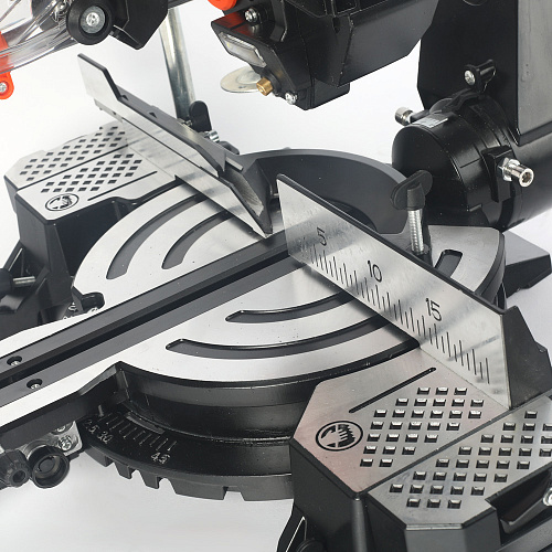 Пила демонстрирует высокое количество оборотов, которые позволяют справиться даже с самыми жёсткими и прочными материалами. Для удобства оператора, рукоятка, которая опускает диск, сделана D-образной формы – на неё удобно положить руку и опускать/поднимать диск. Кроме того, очень важной особенностью является наличие шкалы, которая увеличивает точность реза, вместе с использованием лазерного указателя.
