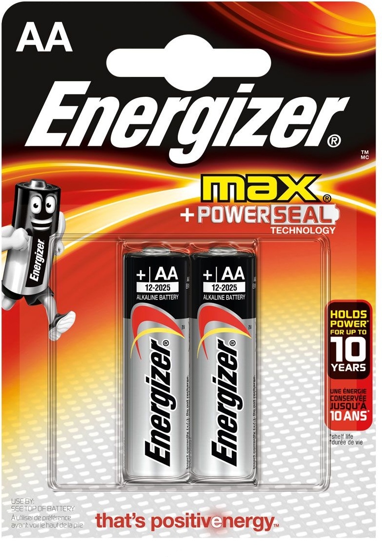 Батарейка AA Energizer MAX 2шт E300157000 относятся к стандарту AA, имеют следующие размеры: диаметр в пределах 13 — 15 мм и длину 60 мм. В бытовом обиходе их именуют «пальчиковыми». Этот вид гальванических элементов питания невероятно распространён по всему миру.