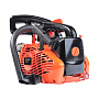 Модель оснащена фирменным двухтактным двигателем, обеспечивающим высокую производительность. Даже при интенсивной эксплуатации техники, уровень вибрации достаточно низкий, что является фактором комфорта. Корпус очень эргономичный, рукоятка имеет специальный антискользящие накладки, поэтому бензопилу легко удерживать и точно управлять ею.