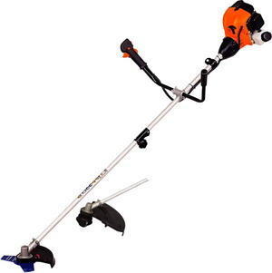 Комплектуется модель металлическим ножом и леской диаметром 2,4 мм, что позволяет устанавливать необходимый режущий элемент в зависимости от типа работ.