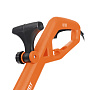 Триммер состоит из: ручки управления с клавишей пуска, штанги, защитного кожуха и катушки с леской. Дополнительная ручка и телескопическая штанга регулируются и можно выбрать максимально удобное положение для любого роста оператора. Во время работы сетевой шнур крепится в специальный зажим. Двигатель представленной модели расположен внизу. Благодаря этому обеспечивается комфорт во время работы и снижается вибрация на ручке управления. Безопасность во время работы обеспечивается защитным кожухом. Он препятствует попаданию скошенной травы и мелких камней на оператора. Триммер оборудован системой полуавтоматической подачи лески, диаметр которой не должен превышать 1.4 мм. Ширина скашиваемой поверхности составляет 25 см.
