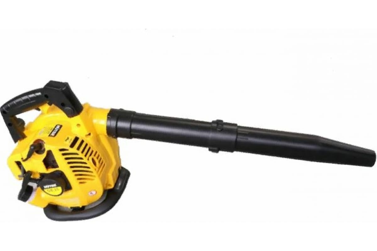 Производитель установил на оборудование 2-тактный бензиновый двигатель. Его мощность составляет 1,01л.с. Объем двигателя 26 см³. Главное преимущество-это мобильность, нет привязки к электропитанию. Топливного бака объемом 0,75л хватит для продолжительной работы без остановки. Максимальный объем воздуха, который прогоняется через воздуходувку за час равен 710 м³. Двигатель имеет воздушное охлаждение. Установлено электронное зажигание (CDI). Крыльчатка выполнена из полимера, что обеспечивает прочность и малый вес относительно аналогов. Весь пластик воздуходувки ударопрочный и надежно защищает внутренние механизмы от повреждения. Праймер подкачки позволяет быстрее запускать двигатель за счет заполнения карбюратора топливом. Вес инструмента составляет 1,5 кг.